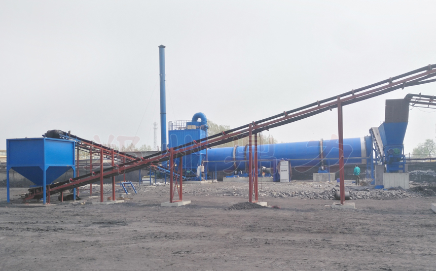 鼎力煤炭烘干機主要由熱源、喂料裝置、帶式上料機、回轉滾筒、帶式出料機、引風機、除塵器和配電柜構成。